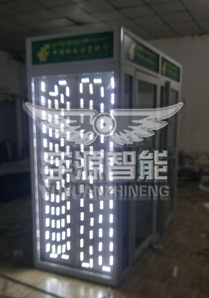 这是邮政储蓄银行双连体智能ATM防护舱出货前的工厂组装成品测试照片,效果非常好和效果图的匹配度在90%以上。